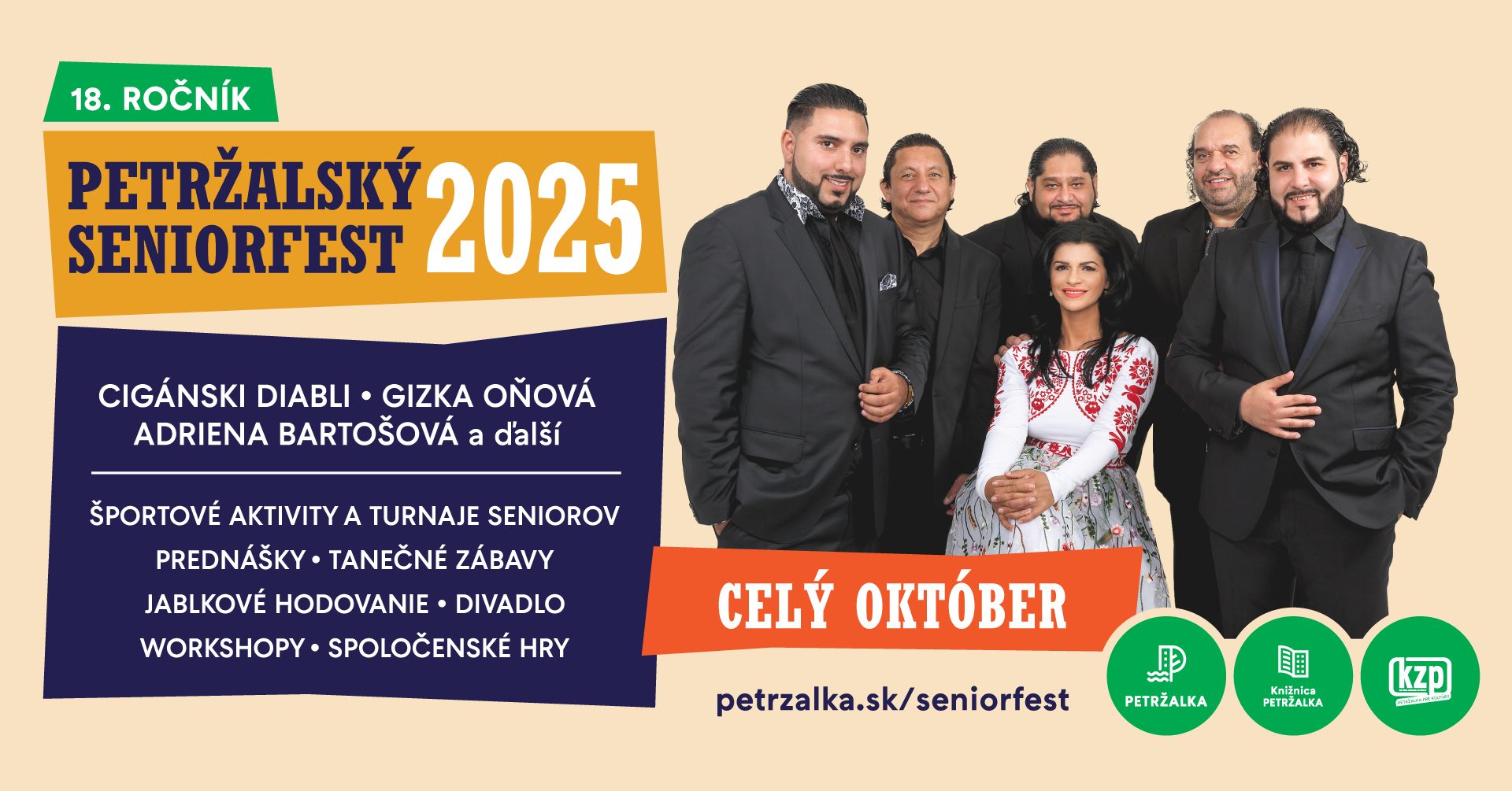 Naše pozvanie na 18. ročník prijali známe mená ako Cigánski Diabli, Gizka Oňová, Petržalčanka, Melódia, žilinská skupina Kortina či speváčka Veronika Hatala, ktorí to poriadne rozbalia v sobotu 4. októbra na Námestí Republiky, kde sa uskutoční obľúbené Jablkové hodovanie. Z úcty k vám sa zase o veľkolepý záver postará speváčka Adriena Bartošová.