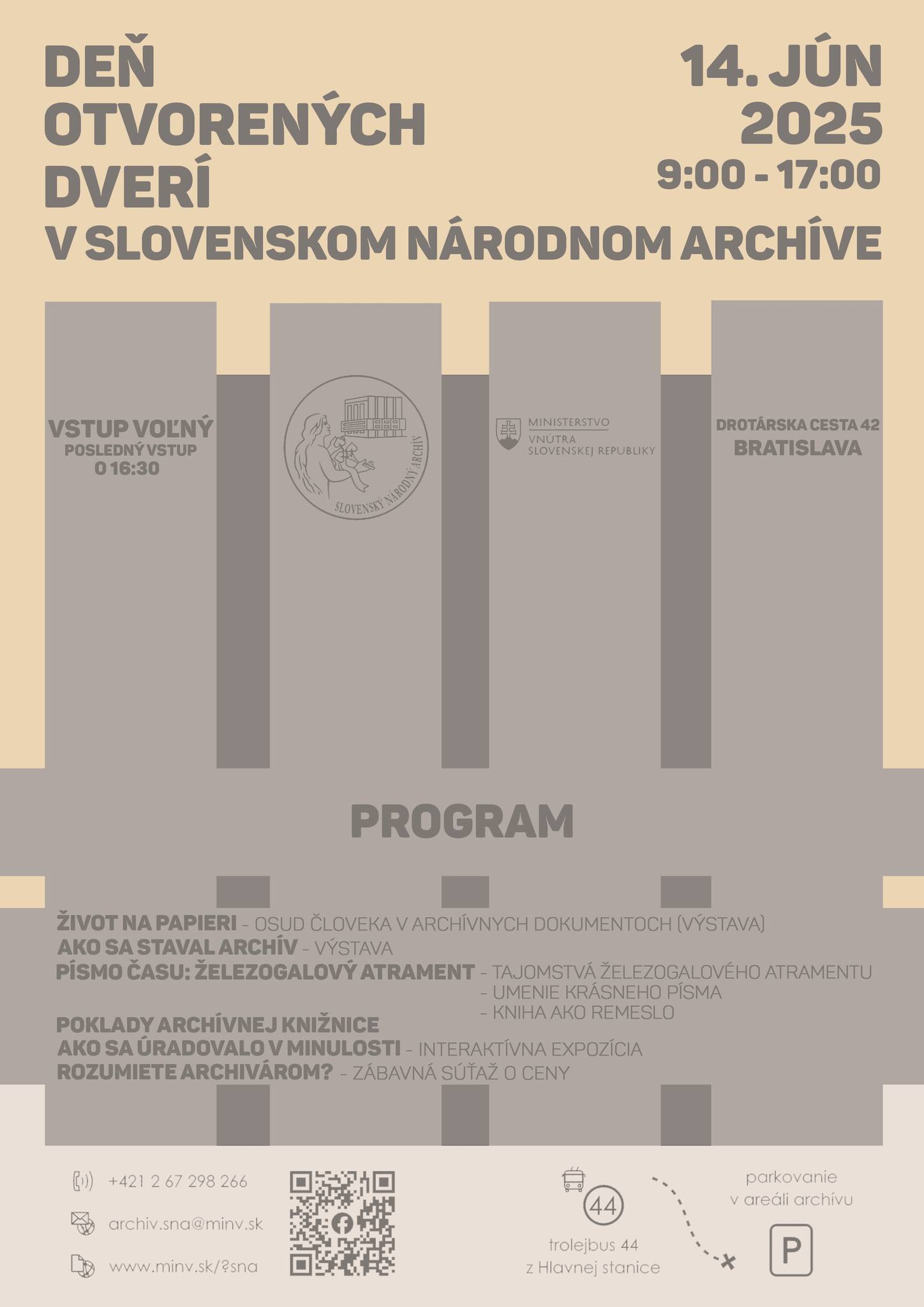 Slovenský národný archív, ktorý je najväčším a najvýznamnejším verejným archívom na Slovensku, otvorí brány pre širokú verejnosť v sobotu 14. júna 2025. Príďte prebádať útroby ikonickej budovy nad Bratislavou!