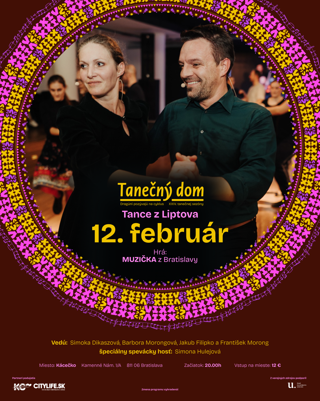 Vstupné: 12€ (30 min. pred začiatkom podujatia)