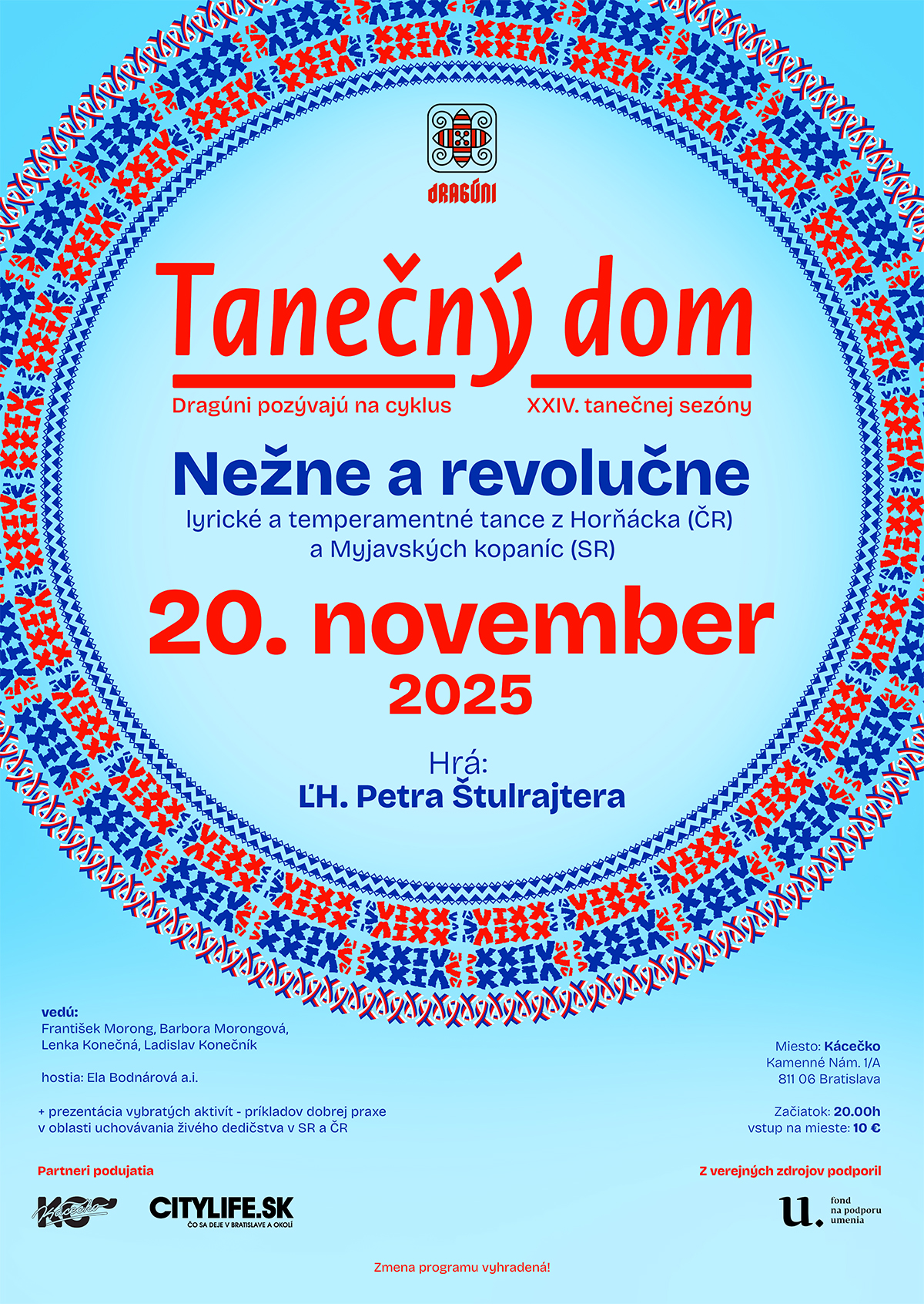 Dragúni pozývajú v rámci XXIV. sezóny na Tanečný dom - Česko/Slovensko z cyklu Nežne a revolučne.