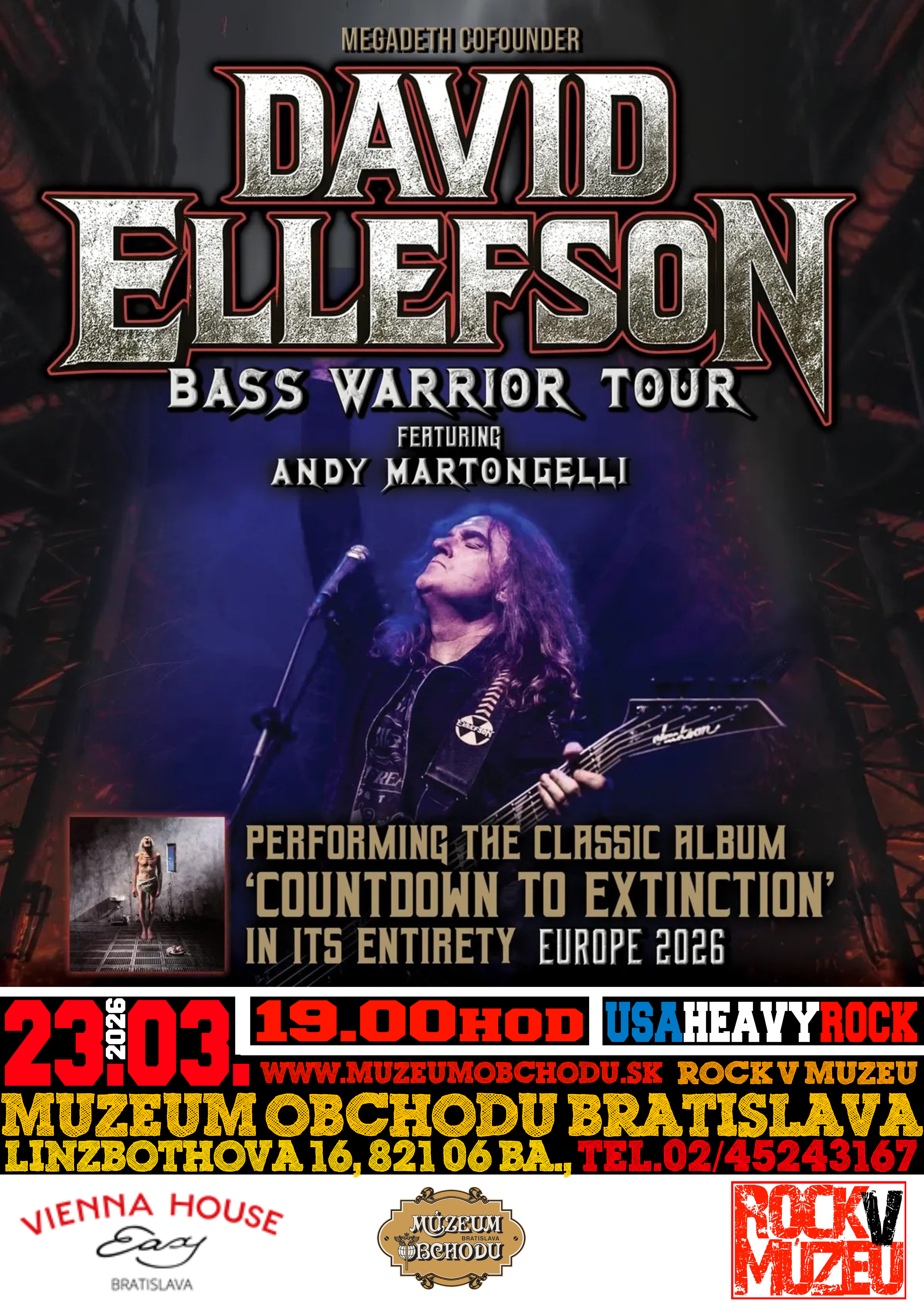 Koncert v múzeu je súčasťou „Bass Warrior Tour 2026“, na ktorom David prezentuje najmä klasický album „Countdown To Extinction“ z roku 1992.
