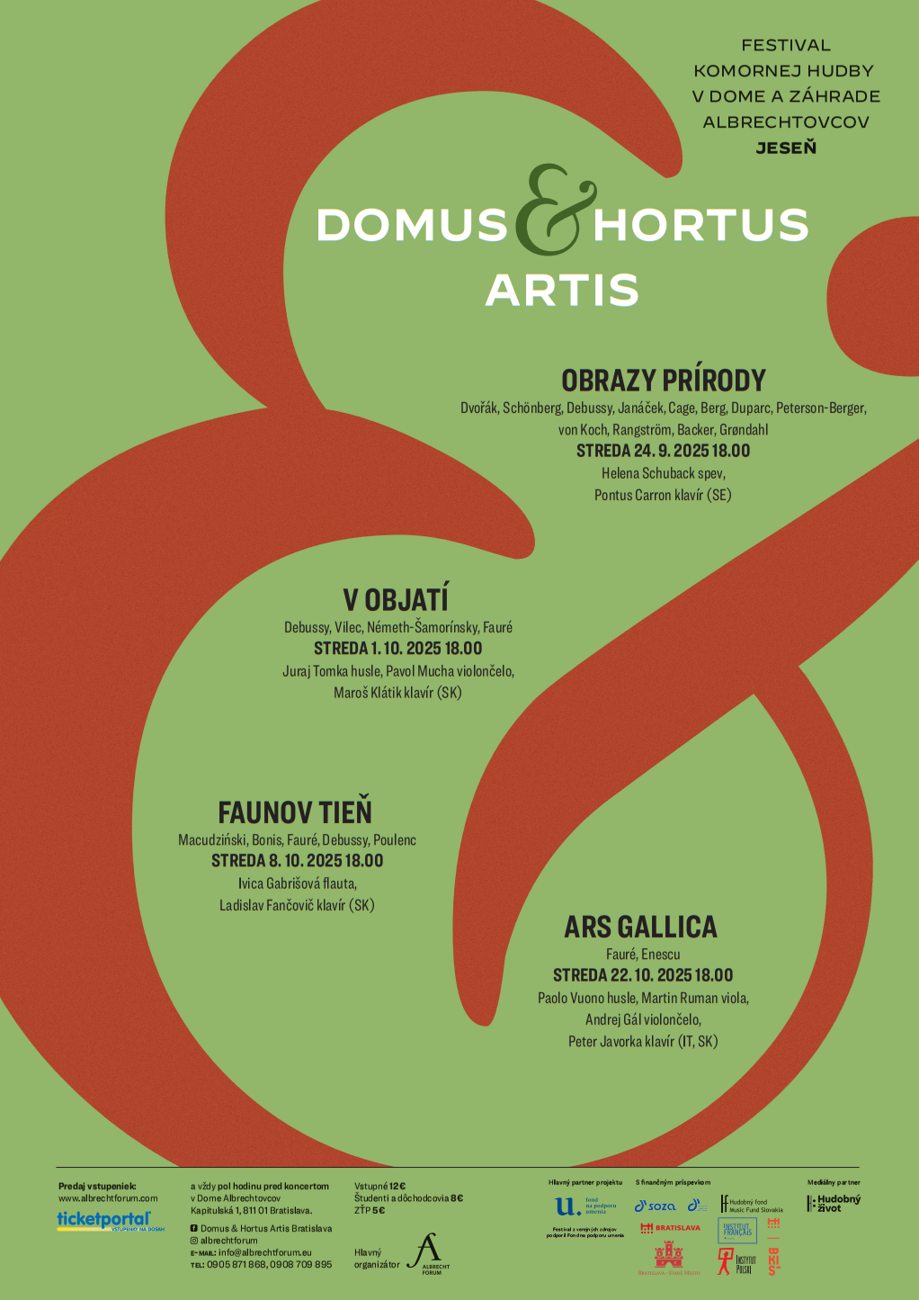Jesenná časť festivalu komornej hudby v dome a záhrade Domu Albrechtovcov.