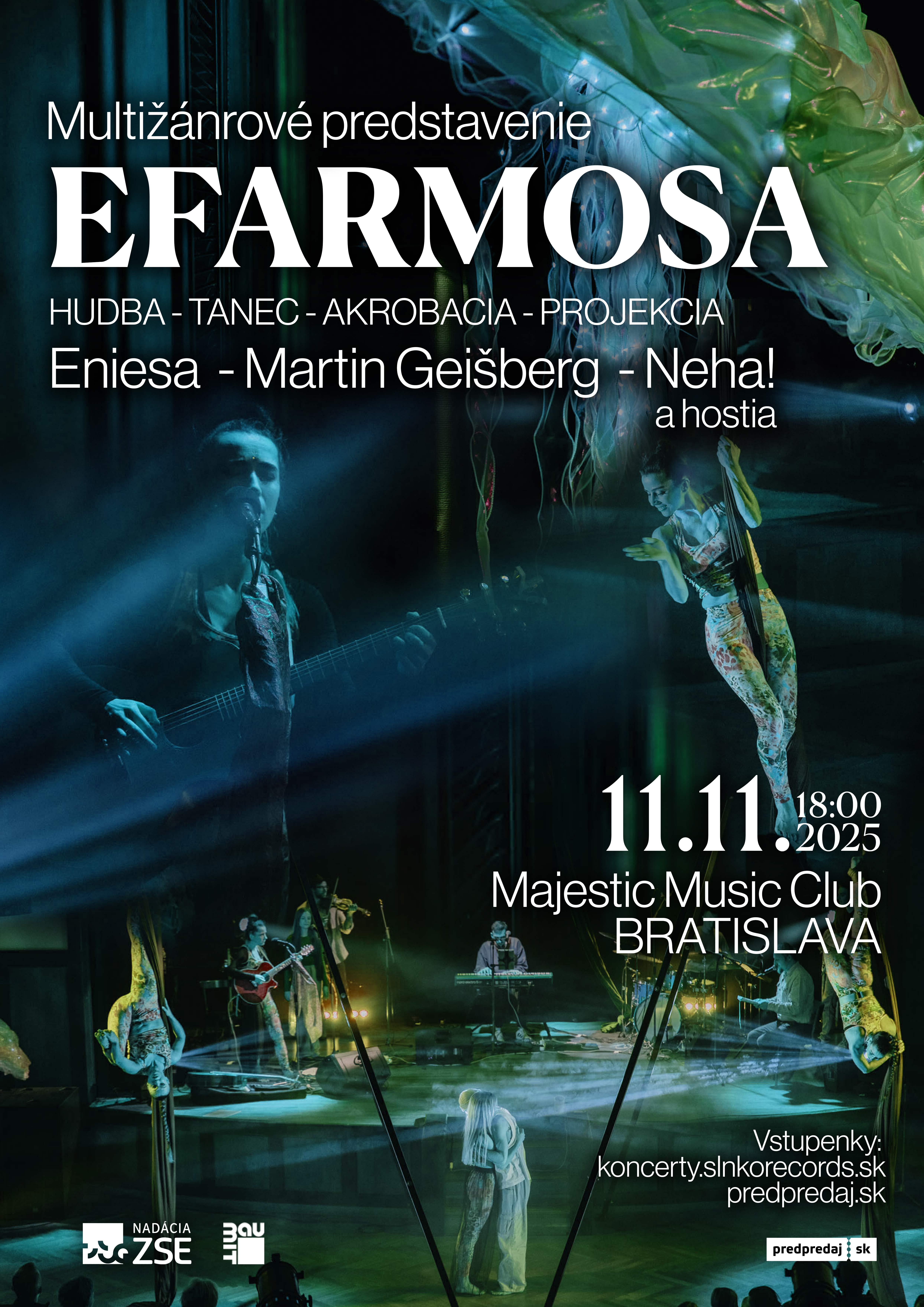 Eniesa je hudobníčka, ktorá má na konte už šesť autorských albumov, z ktorých najväčší úspech zaznamenalo určite jej EP Jablko v spolupráci s Frantou Černým z kapely Čechomor, ale aj country album Arya's, na ktorom nájdete aj zahraničné hviezdy ako Bill Barrett, Yaahn Hunter či Aaron Brooks. Jej posledný album Efarmosa je tiež plný kooperácií a to hlavne so spevákmi zo Slovenska aj Čiech. Je teda plný duetov. Práve tie pred dvoma rokmi inšpirovali hudobníčku album pokrstiť vo veľkom a prizvať si na túto udalosť čo najviac hudobníkov a spevákov z projektu. Napokon sa nápad rozrástol a z obyčajného koncertu vzniklo predstavenie so silným príbehom, podmanivou projekciou z vodného sveta, profesionálnymi tanečnými výkonmi ale aj netradičnou akrobaciou, ktorú v Efarmose performuje aj samotná speváčka a autorka.