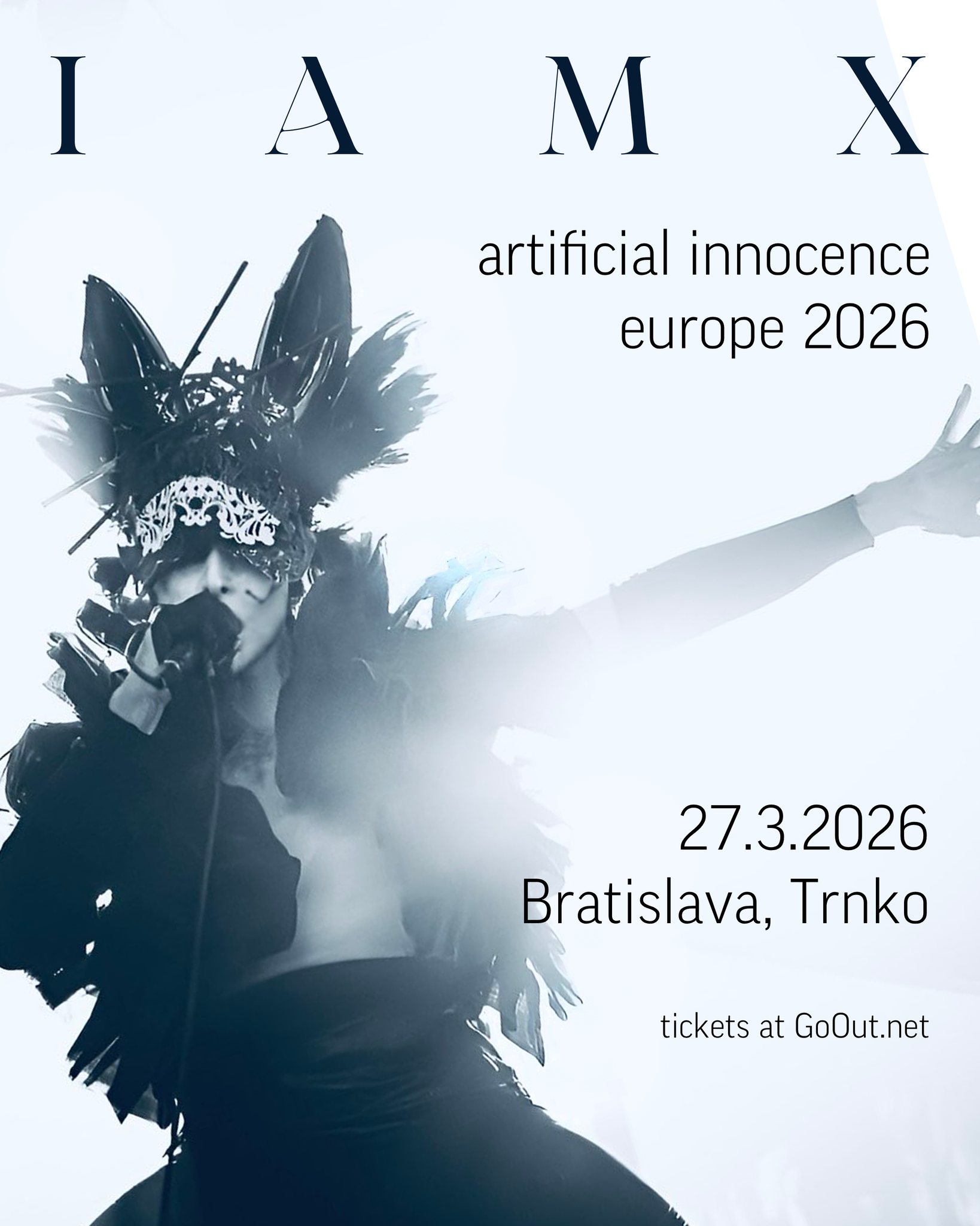 IAMX (Chris Corner) je umelec, ktorý už viac ako dve dekády posúva hranice elektroniky, performance a osobnej výpovede. Od začiatkov v Sneaker Pimps až po vznik IAMX vytvoril temný, emotívny a provokatívny svet, v ktorom sa mieša elektronický experiment, punková energia a intímna lyrika. Témy identity, sexuality, duševného zdravia a existenciálneho nepokoja sú jadrom jeho tvorby. Najnovší album Fault Lines² (2024) debutoval na 1. mieste Deutsche Alternative Charts a držal sa tam šesť týždňov.