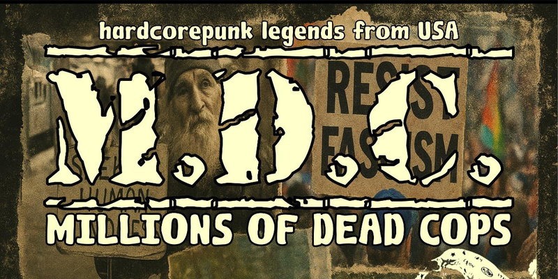 Millions of Dehumanized Civilians (MDC) are the hardcore/punk pioneer from 1979 US. MDC aka Millions of Dead Cops, Multi Death Corporation, Millions Of Dead Children and so more names are kicking it into high gear with their 27th European tour.