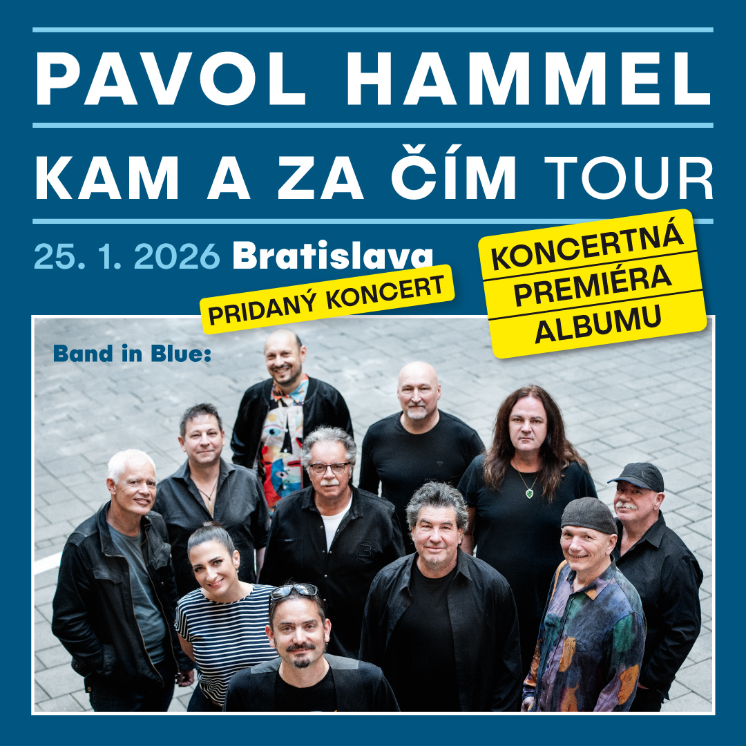 Pavol Hammel sa predsatví s novým koncertným programom, počas ktorého zaznie albumová novinka "Kam a za čím" v celej dĺžke a za doprovodu výnimočnej koncertnej zostavy Band in Blue. Pre veľký záujem fanúšikov po vypredaní prvého bratislavského koncertu pribúda ďalší termín - 25. januára 2026.
