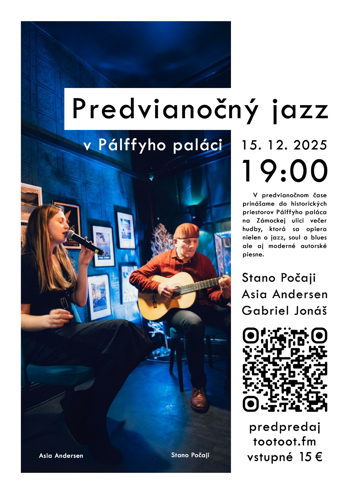 Predvianočný jazz v Pálffyho paláci nebude tradičným „vianočným programom“, ale výnimočným večerom hudby bez hraníc – citlivej, energickej, spontánnej aj intímnej.