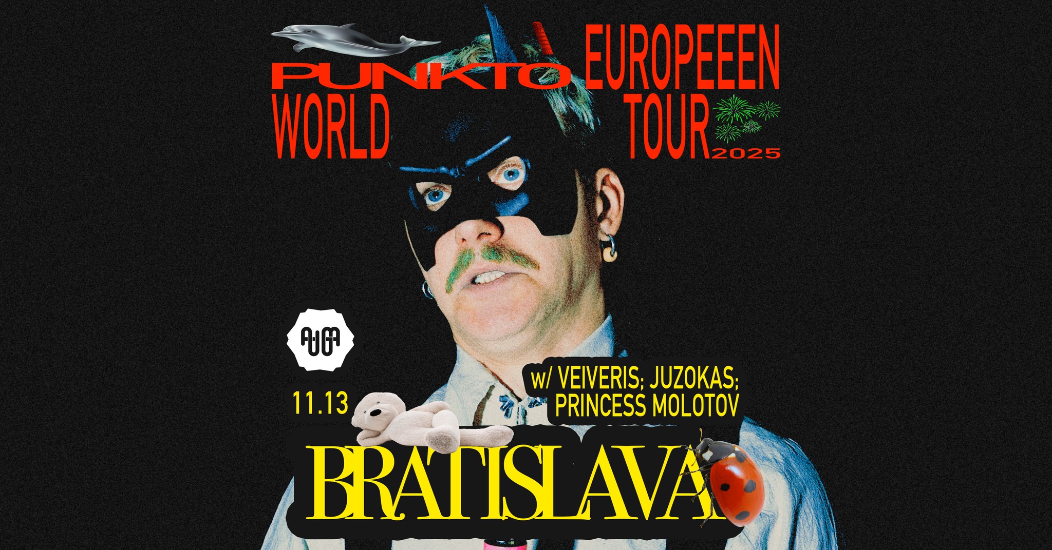 Punktò podporujú VEIVERIS, vychádzajúci litovský elektronický producent a živý performer, ktorého album Virsmas z roku 2025 spája darkwave a elektronické rytmy do náladovej, ale tanečnej atmosféry, a Juzokas, ktorý prináša atmosférické techno a dodáva noci svoju vlastnú jedinečnú energiu.