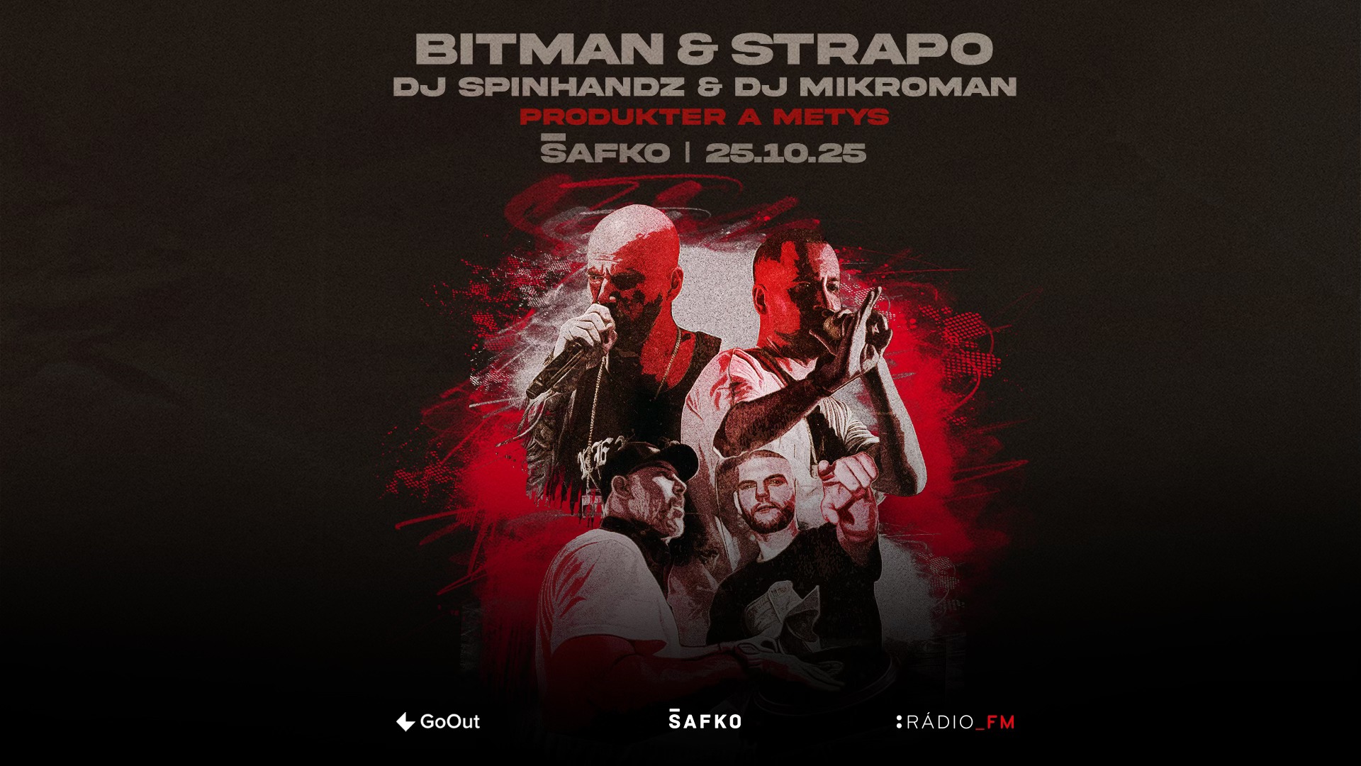 Strapo and Bitman are returning to the Šafko club with their big show, which they played this year, for example, at the Hip Hop Žije festival. DJs Spinhandz and MikroMan will also be on stage with them.