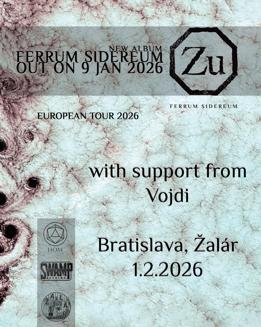 Trojica Zu, ktorá vznikla v talianskej Ostii je kapelou, ktorú nemožno len tak ľahko zaškatuľkovať. Zostava kapely (baritónový saxofón, basová gitara a bicie) je typická pre jazzovú kapelu, no ich tvrdý a nekompromisný zvuk sami prisudzujú inšpirácii v punk-rocku. Ak by sme však mali vybrať konkrétne žánre, tak najčastejšie sa pri Zu hovorí o žánroch ako math rock, noise, industrial, avantgarda, ambient, či drone. Zu vďaka svojej neuchopiteľnosti v minulosti spolupracovali aj s množstvom spriaznených kapiel ako Einsturzende Neubauten, Sonic Youth, Can, The Stooges, The Ex, či Mikeom Pattonom. Do Bratislavy pricestujú v tradičnej trojčlennej zostave s novým albumom Ferrum Siderum, ktorý vychádza 9.1.2026
