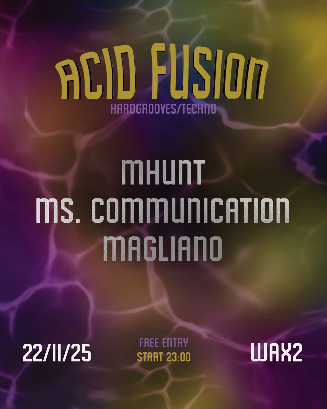 partyacidAcid FusionĎalšia edícia Acid Fusion party v klube WAX2 s DJmi Mhunt, Ms. Communication a Magliano. Free entry.