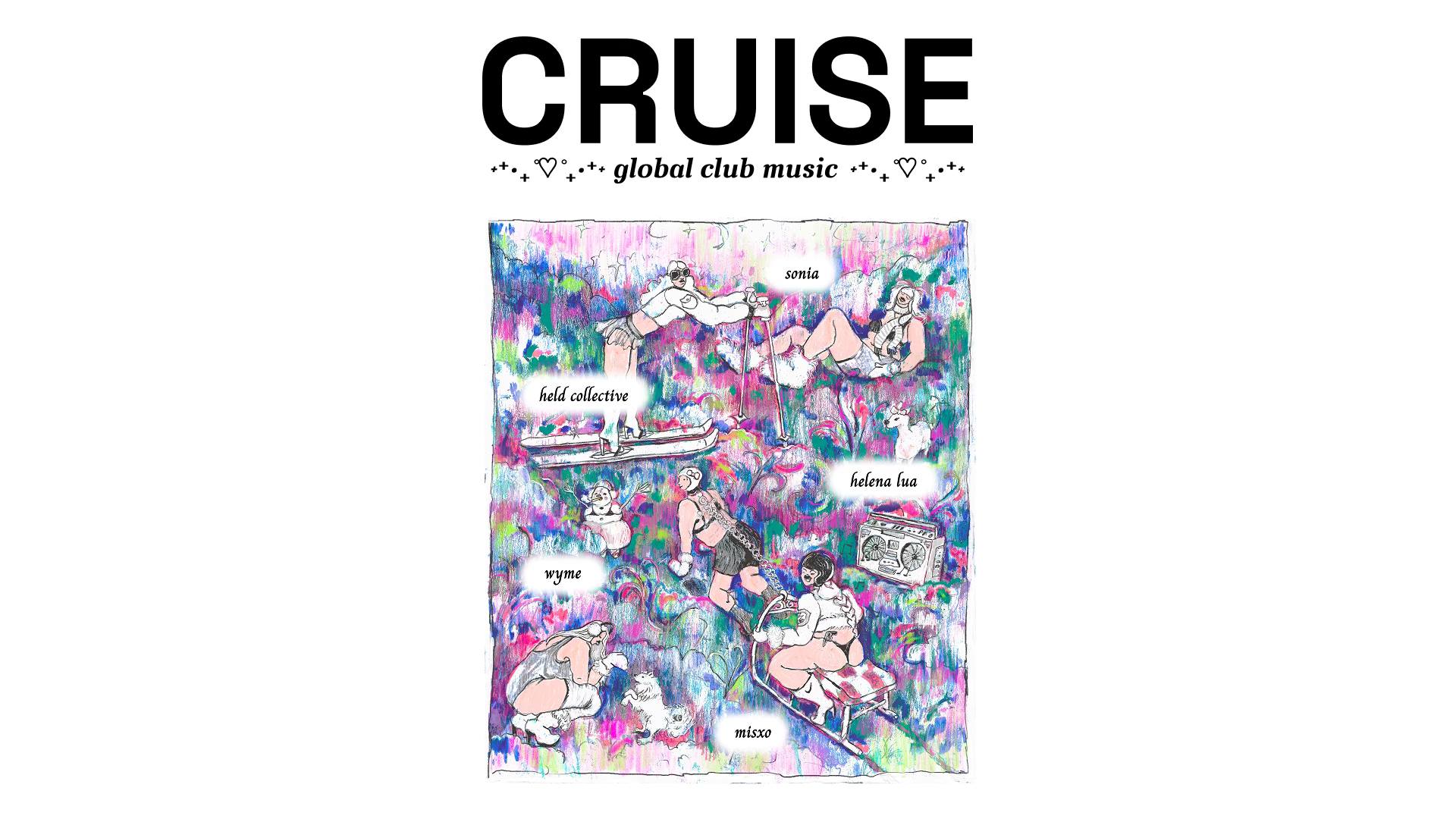 This is Cruise. Your regular dose of the hottest global club music. Baile funk, latincore, afro, reggaeton, jersey club and more. All our baddies in the hottest outfits twerking their asses and spilling their drinks. Endless kicks, fog and flashy lights. Tradition, innovation, chill on the beach and rave, all in one.