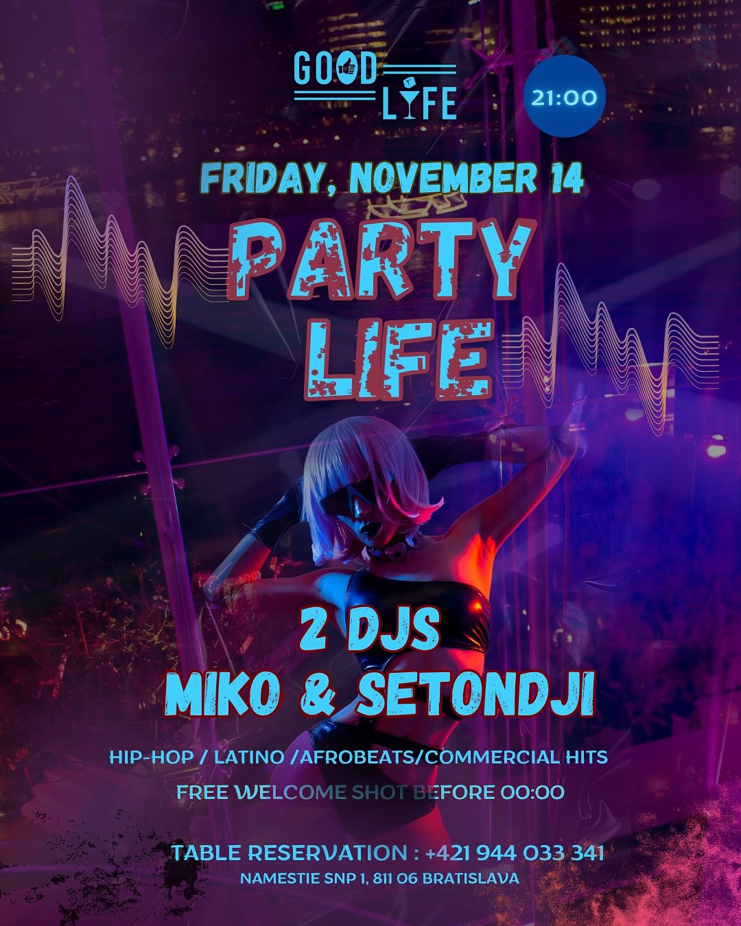 Nočný párty život v Good Life Club s DJmi Miko a Setondji.