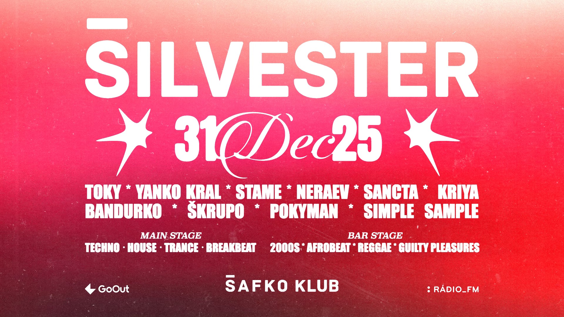 Príď osláviť príchod Nového roka do klubu Šafko a nových priestorov Backstage Baru. Fresh line-up bude rozdelený na dvoch stage-och, vďaka čomu si každý nájde to svoje. Žúrovať sa bude až do skorého rána!