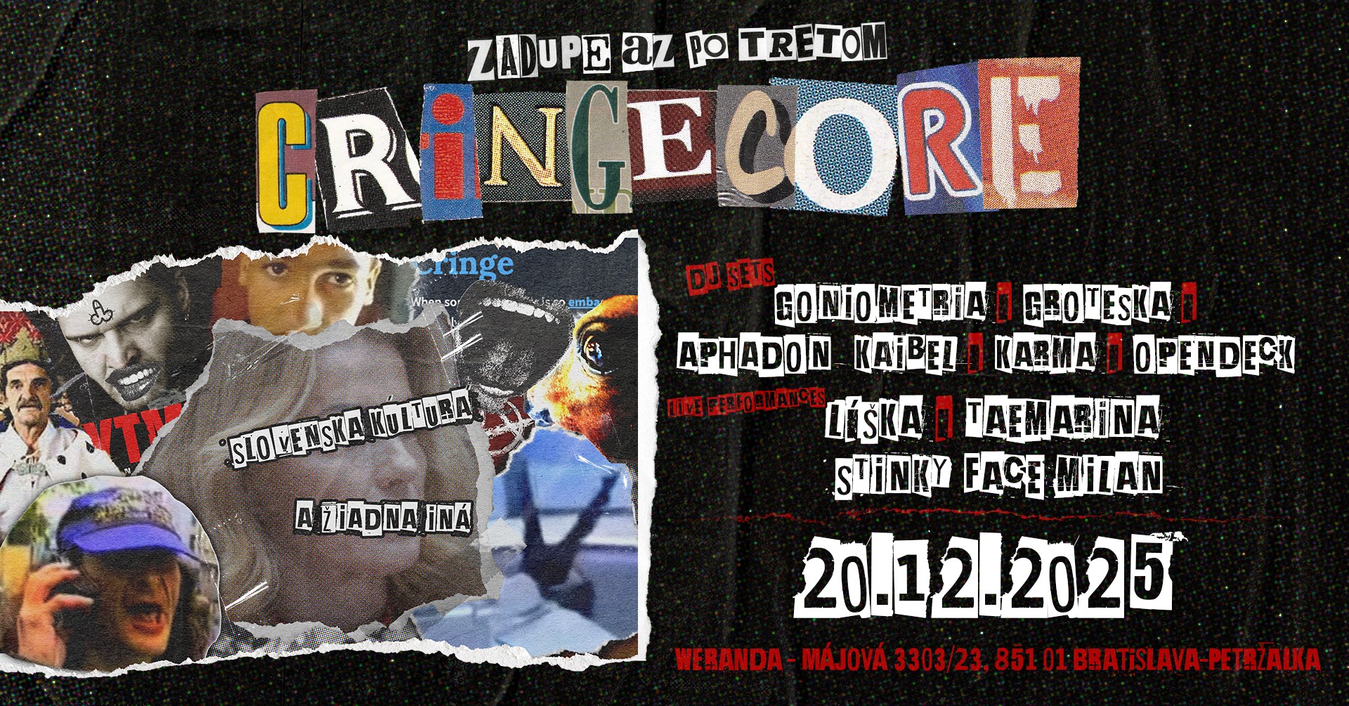 Očakávajte rôznorodé niche žánre, ktoré nepoznajú hranice, zmixované s meme fragmentami, lokálnymi hitmi a popkultúrnymi momentami, kde jediné pravidlo je Cringe. Na programe budú aj špeciálne live koncerty, po ktorých sa budeš chcieť prepadnúť pod zem. Bude aj open deck / open mic pre odvážlivcov. No proste, bude to slayáda, bude to topka.