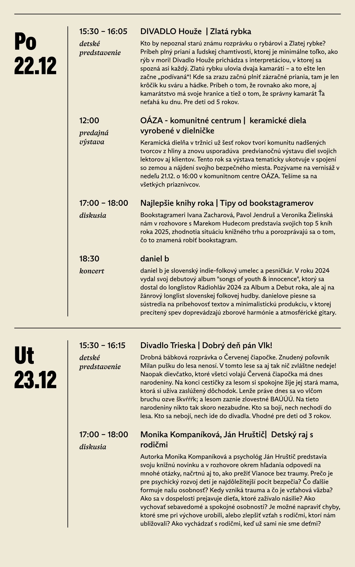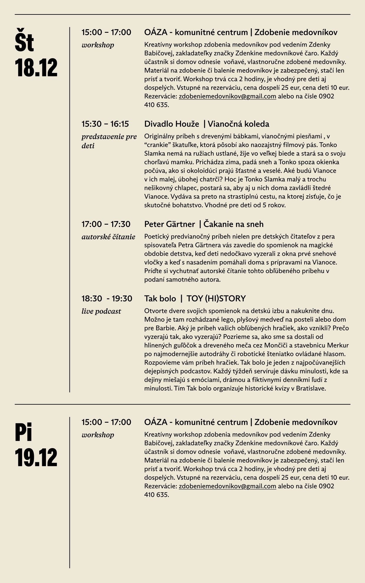 II. turnus predajcov: 17. – 19. 12. 2025 (streda | štvrtok | piatok)