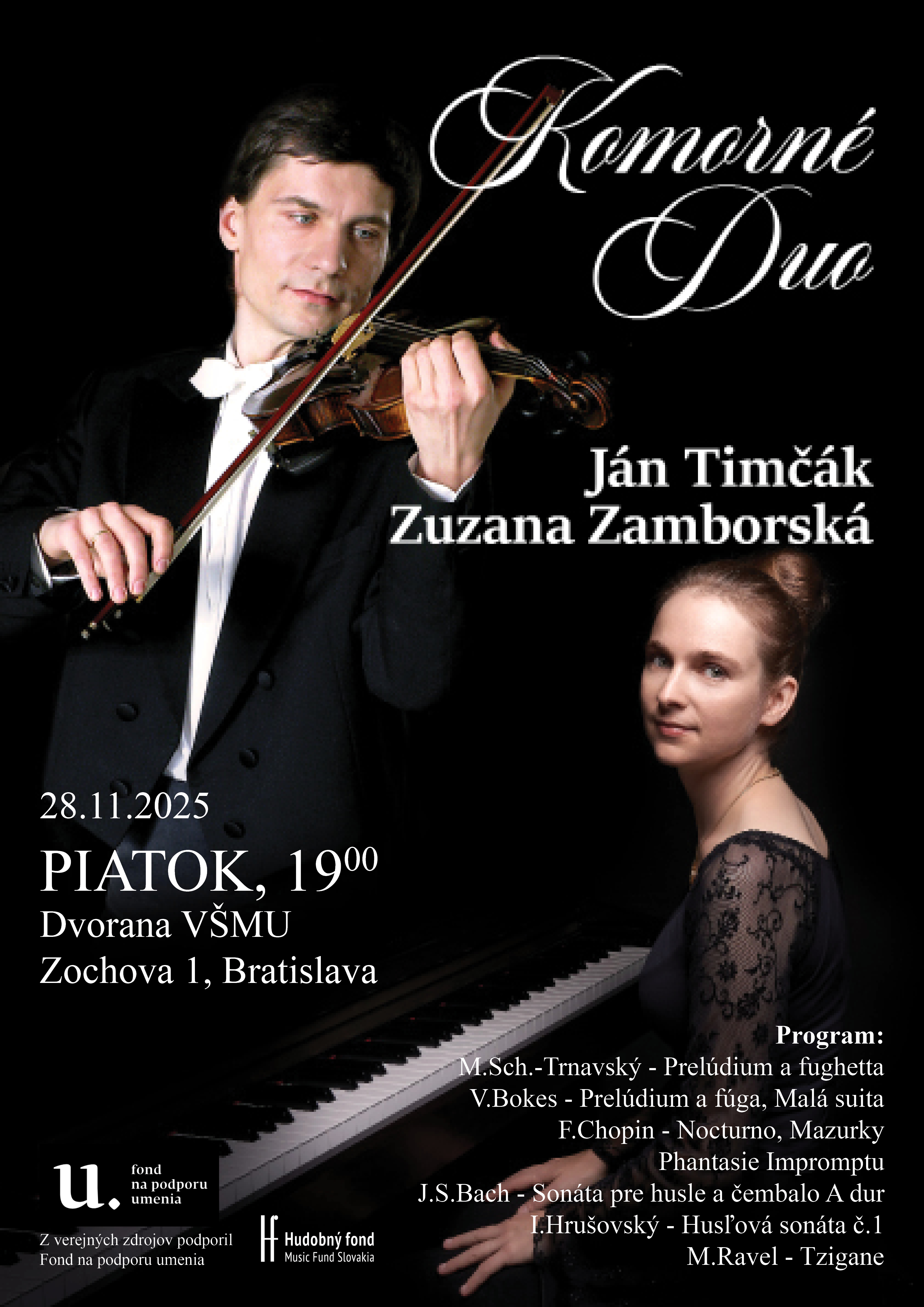 Na úvod koncertu zaznejú skladby M. Schneidera-Trnavského, V. Bokesa a slávne diela F. Chopina v interpretácii klaviristky Z. Zamborskej. Sonáta pre husle a čembalo A dur J.S. Bacha je jedna z najkrajších sonát barokovej hudby. Hrušovského sonáta zaujme svojou romantickou náladou a koncert uzatvára virtuózne dielo Tzigane od M.Ravela.