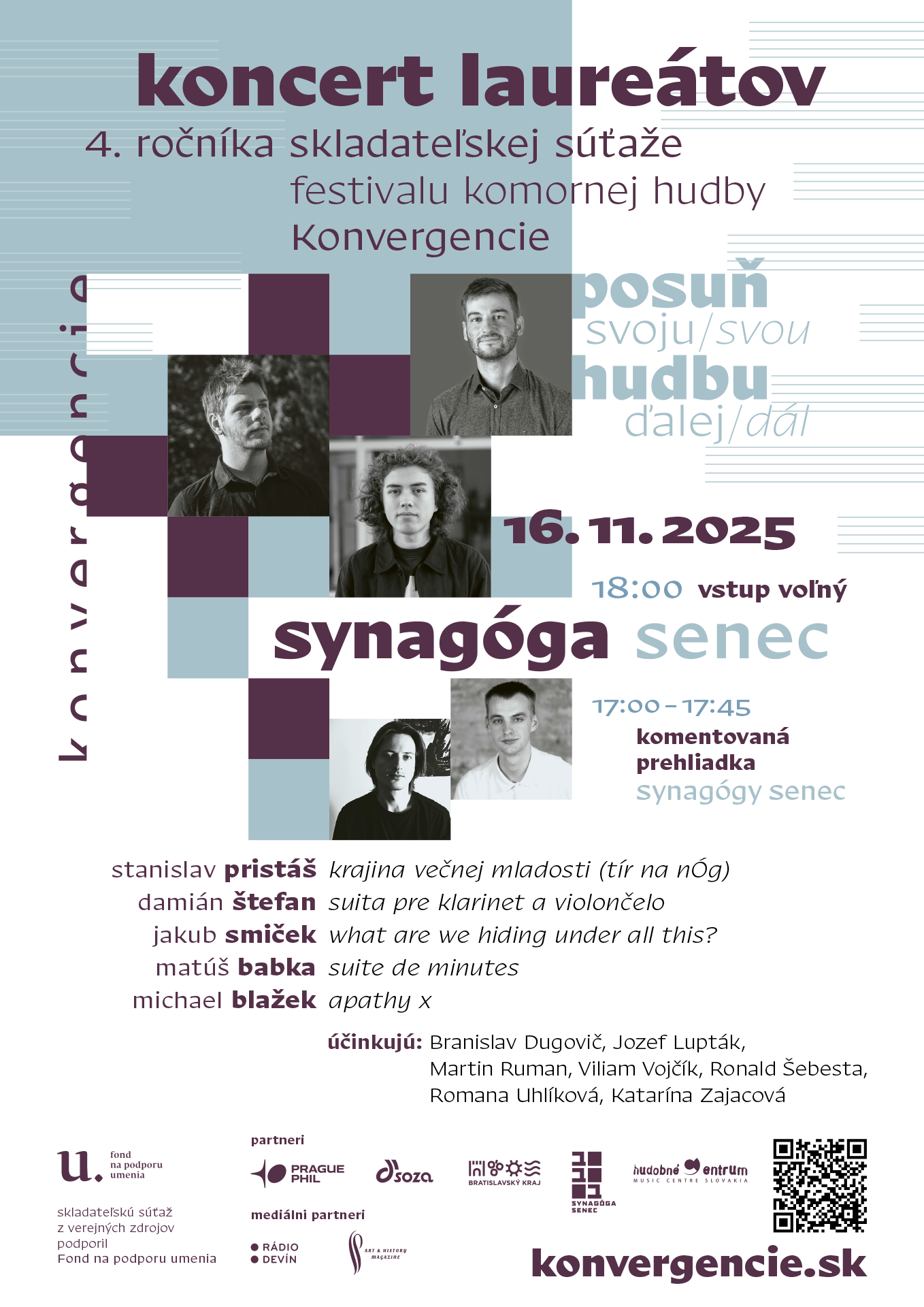 Festival Konvergencie už viac ako dve desaťročia prináša komornú hudbu v rôznych podobách a kontextoch s dôrazom na umeleckú kvalitu, originalitu a spoluprácu. Skladateľská súťaž festivalu vznikla s cieľom motivovať mladých autorov a autorky k tvorbe nových diel a vytvárať prepojenie medzi skladateľmi a interpretmi. V posledných dvoch ročníkoch sa do súťaže mohli zapojiť okrem slovenských skladateľov aj českí skladatelia a skladateľky do 35 rokov. Diela autorov sú premiérovo uvádzané aj v zahraničí, koncert laureátov aktuálneho ročníka sa bude konať v Prahe v decembri 2026 v rámci spolupráce s Prague Philharmonia.