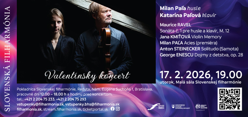 Venujte na Valentína Hudbu. Pri zakúpení vstupeniek na komorný koncert od 9. do 17. februára si uplatnite zľavu 1+1 vstupenka zdarma.
