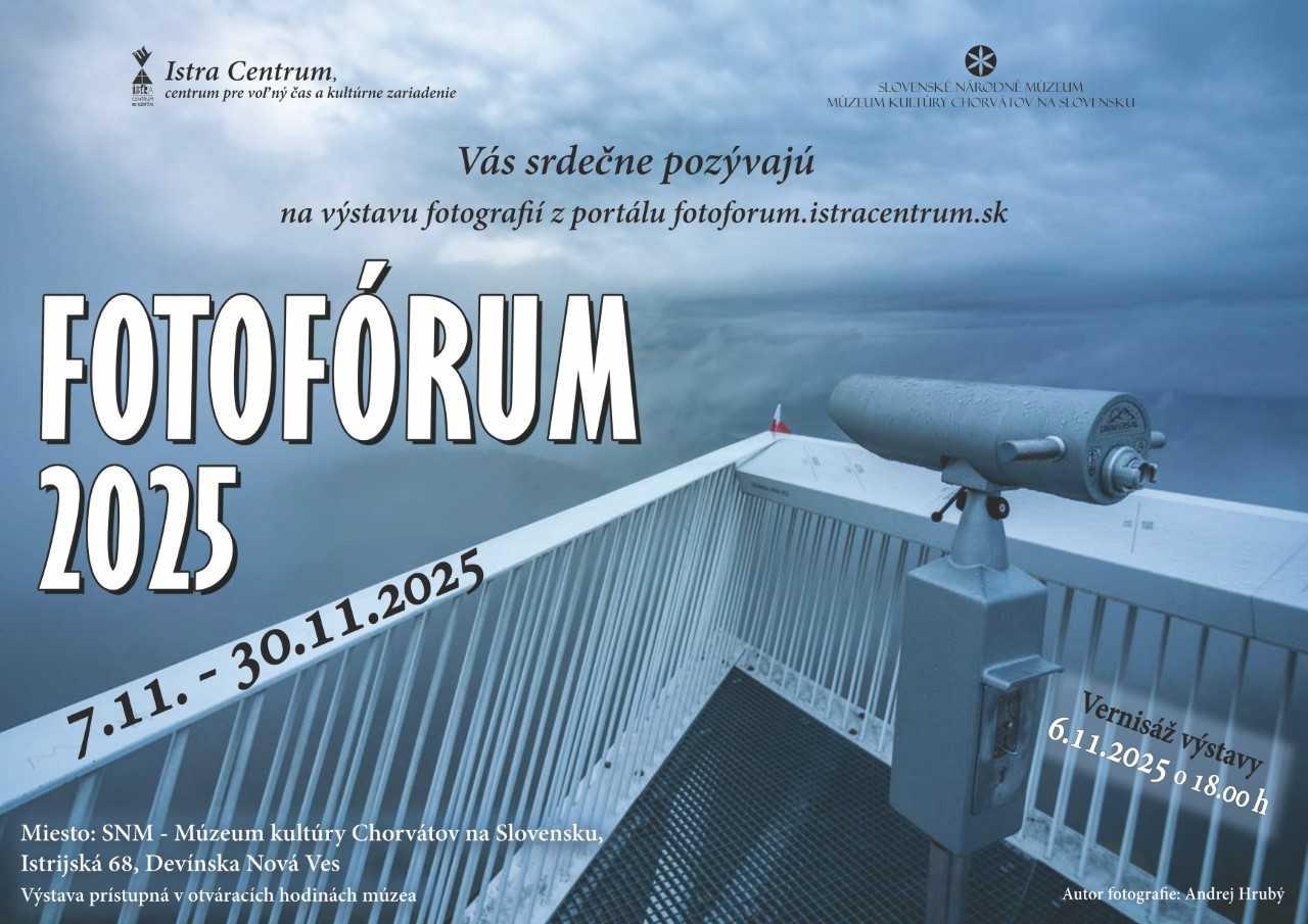 Slovenské národné múzeum - Múzeum kultúry Chorvátov na Slovensku v spolupráci s kultúrnym zariadením Istra Centrom - centrom pre voľný čas a kultúru v Devínskej Novej Vsi pozýva na výstavu Fotofórum 2025.