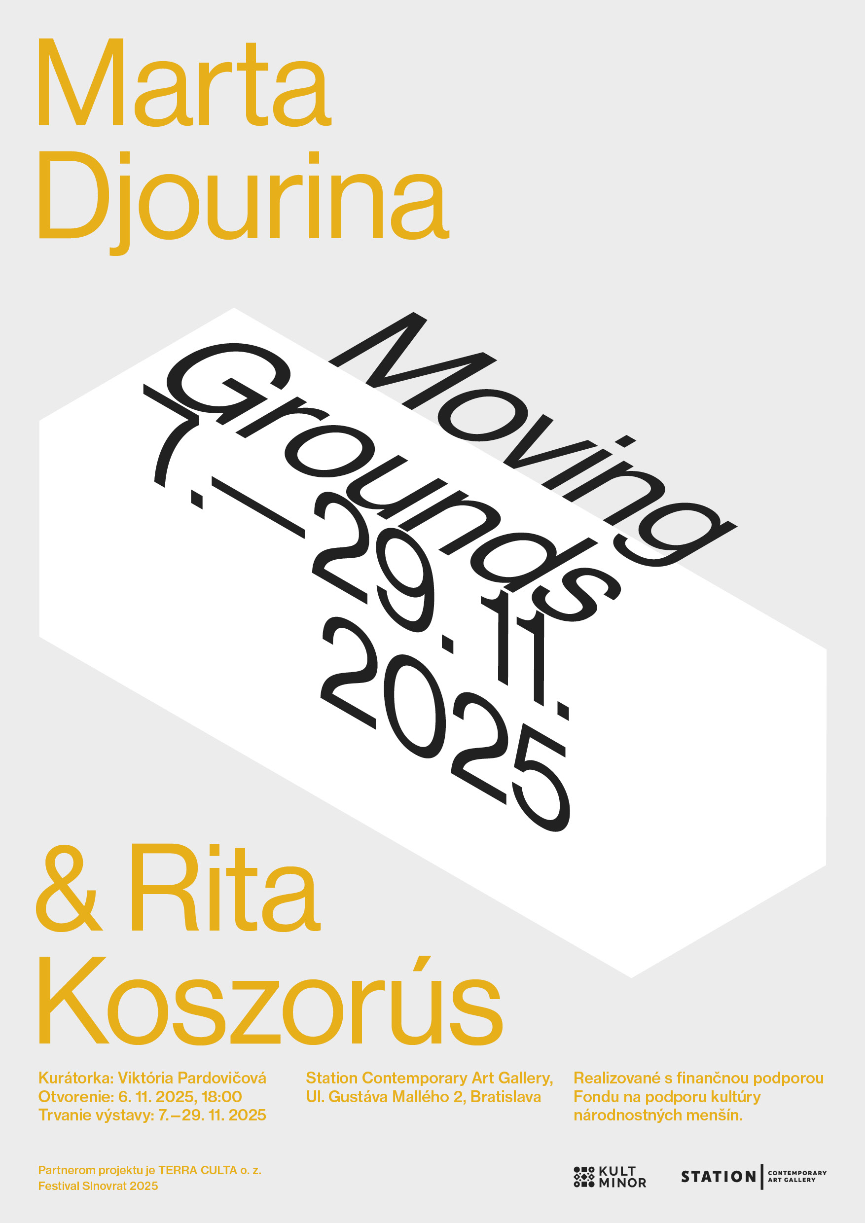 Projekt pracuje s priestorovou inštaláciou – kombinuje a konfrontuje maľbu, koláž a textilné objekty Rity Koszorús so špecifickými analogovými fotografickými expozíciami, vznikajúcimi bez použitia fotoaparátu Marty Djouriny. Výstava tak vo vrstvách a často expresívnych juxtapozíciách predstavuje metaforu miest neustáleho presunu – pohybu a pohotovosti, ktorými sú staničné či letiskové haly – koncentráty nových očakávaní, prchavých momentov, ale aj zamrznutého času, nepokojnej nervozity i odhodlania k zmenám.