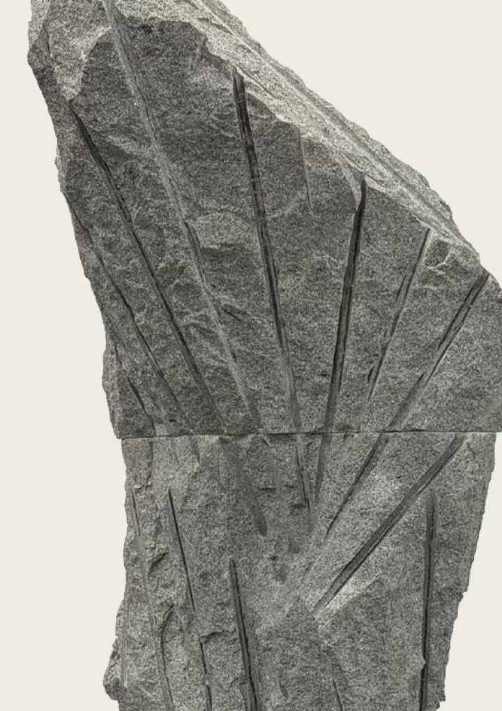 The One Who Breathes ilustruje túto dynamiku: forma v priebehu vzniku, sotva oddelená od žuly, ktorá ju ešte obsahovala, nesie stopy svojho vytrhnutia ako znaky minerálneho zrodu. Masa kameňa v procese ťažby si, poznačená priamymi vrtmi, zachováva stopy po oddelení. Socha sa javí ako prechodný stav, svedok napätia medzi nehybnosťou a pohybom, medzi už obsiahnutou formou a formou, ktorá sa rodí. Objavujeme otvorené bloky, rozštiepené plochy, naklonené objemy, kde kameň akoby váhal medzi zrútením a pohybom. Štefan Papčo vizualizuje zastavený moment širšieho procesu – procesu, v ktorom sa hmota odčleňuje, oslobodzuje a hľadá si novú vlastnú polohu. Sila diela pramení práve z „vyťaženého“ pocitu napätia. Napätia smerom k niečomu, čo zostáva mimo dosahu – pocitu ilúzie, sna, tvorivého prebudenia alebo hľadania dokonalosti.