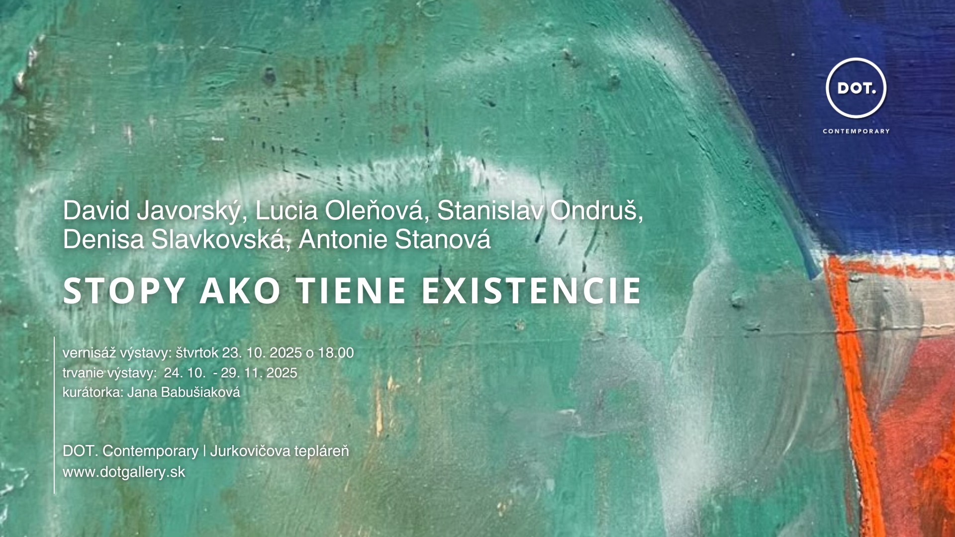 Všetko čo nás obklopuje zanecháva odtlačky. V priestore alebo v našich hlavách tak prežíva množstvo predmetov a situácií, ktoré už možno neexistujú, ale tiene ich existencie si nesieme chtiac-nechtiac so sebou. Hoci je príroda večný kolobeh hmoty a energie, aj to čo v nej odumrelo, nezriedka zanecháva po sebe svoju schránku. Skupinová výstava súčasnej maľby na pomedzí figuratívnych a abstraktných tendencií skúma krehkosť prítomnosti a pamäti, ako aj spôsob, akým sa bytie zrkadlí vo svete cez nepriame znaky, pozostatky a odrazy. Hlavným aspektom v tomto skúmaní sa stáva stopa či už fyzická, emocionálna, symbolická alebo v podobe maliarskeho aktu zaznamenávania videnej reality.