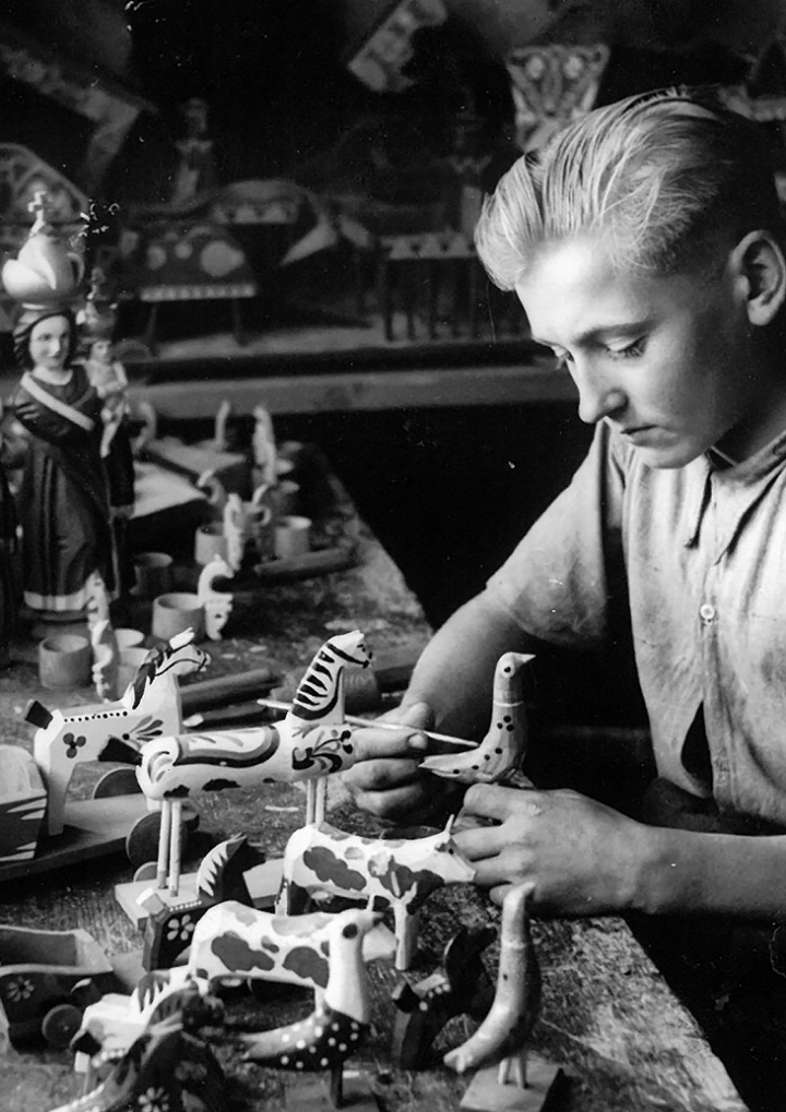 V minulosti bola produkčná činnosť založená na spolupráci medzi výtvarníkom a remeselníkom, pričom